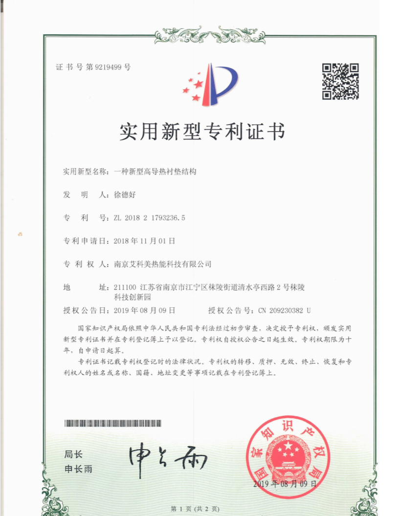 實(shí)用新型專利——一種新型高導(dǎo)熱襯墊結(jié)構(gòu)